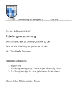 Tennisspielen ist im Verein am schönsten. Die Tennisabteilung des TSV Betzingen wurde 1970 gegründet und hat rund 320 Mitglieder. Besonders stolz sind wir auf unsere über 100 Jugendlichen, die mit ihrer Spiellust viel Schwung in die Tennisabteilung bringen. Das ausgewogene Verhältnis zwischen Breitensport und leistungsorientiertem Sport sorgt dafür, dass sich jeder im Club wohl fühlen kann. Die junge Funsportart Beachtennis ist seit einigen Jahren bei uns integriert. Ein Riesenplus für unsere Abteilung: bei uns kann man rund ums Jahr Tennis spielen!